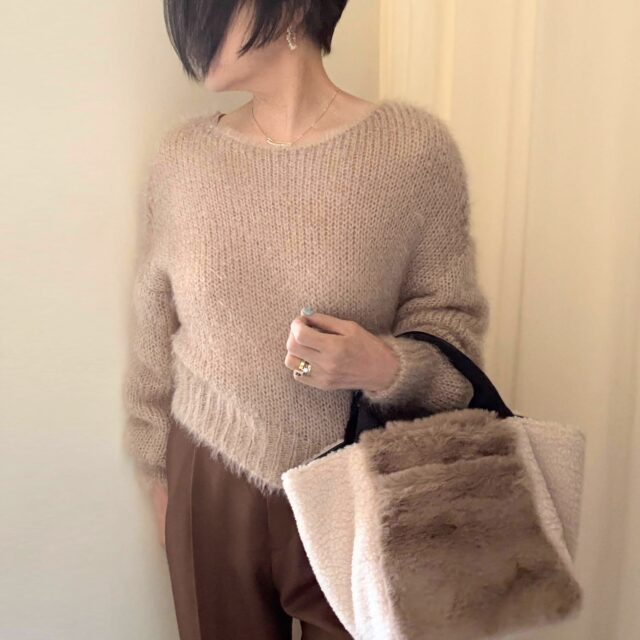 PIERRE HARDYのこのbag買ってから、絶対やりたいと思っていたこのmartiniqueのアプリコットイエローのパンツとの色リンクコーデ。 TOPSは淡いアイボリーのビックニットで。 おお!パンツとバッチリ色が合った。 アクセサリー...