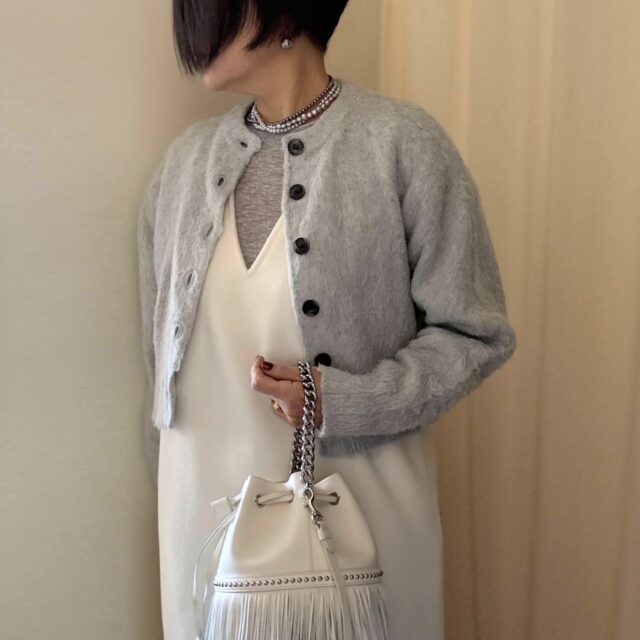先日からやたら気に入ってる白の袖なしワンピ。ジャンパースカートというか。これを今日はグレー×シルバーでコーデしてみた。 今までのコーデ振り返り。グレージュ合わせの日。 黒と合わせたモノトーンコーデ。 今日は下にグレーのカットソーを着て、モフ...