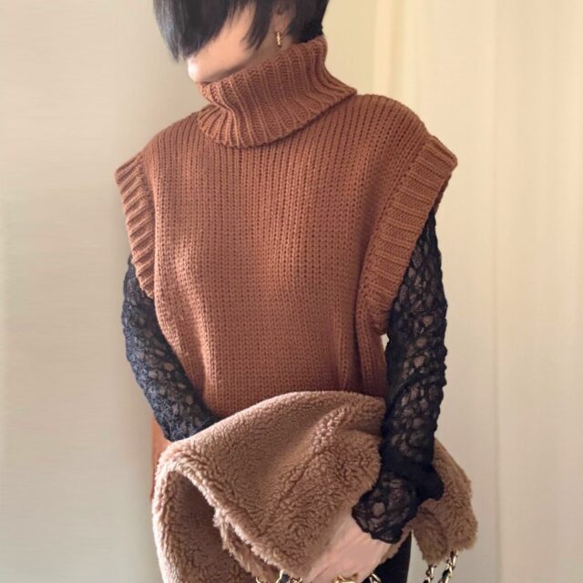 なにこれ。ウエストゴムでファスナーもフックも無くこの上なく楽ぅぅなスカート。 なのになのに。 すごくシルエットが綺麗。マーメイドラインのスカート。マキシ丈。 この手のスカートは上半身短めにまとめたほうが良さげ。ということで袖の無いタートルネ...