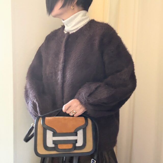 こげ茶コーデ。今日着ているニットのアウターは優れもの。 カーディガンよりはしっかり厚地でむしろジャケットという感じ。コートを着るほどではないけど何か暖かいもの羽織りたい・・・という日にピッタリなシャギーなニットのアウター。 とにかく暖かい!...