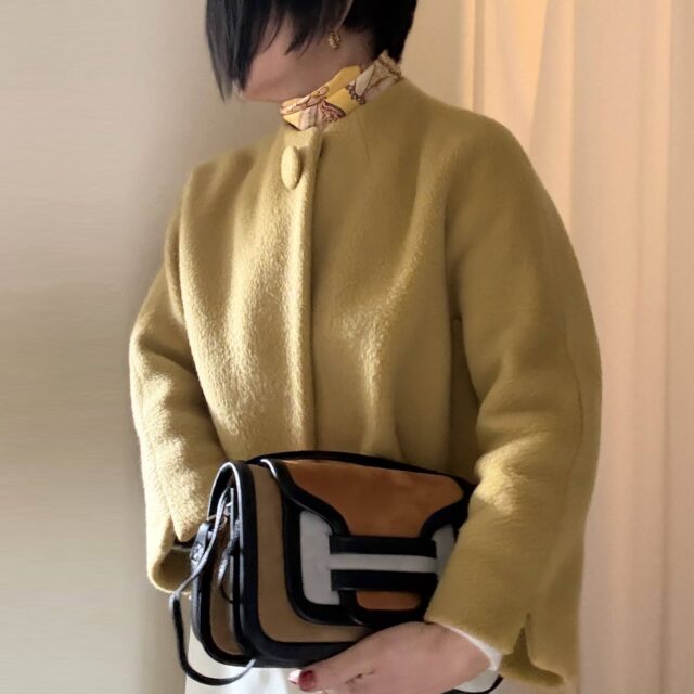 辛子色がテーマの日。この黄色いショートコートは J&M DAVIDSONのものでかなり長ーく着ている。とても合わせやすい。 コートの中はホワイト系。この金ボタンのニットカーディガン、コンパクトなシルエット。ニットっぽく一枚でも着れる。ワンピ...