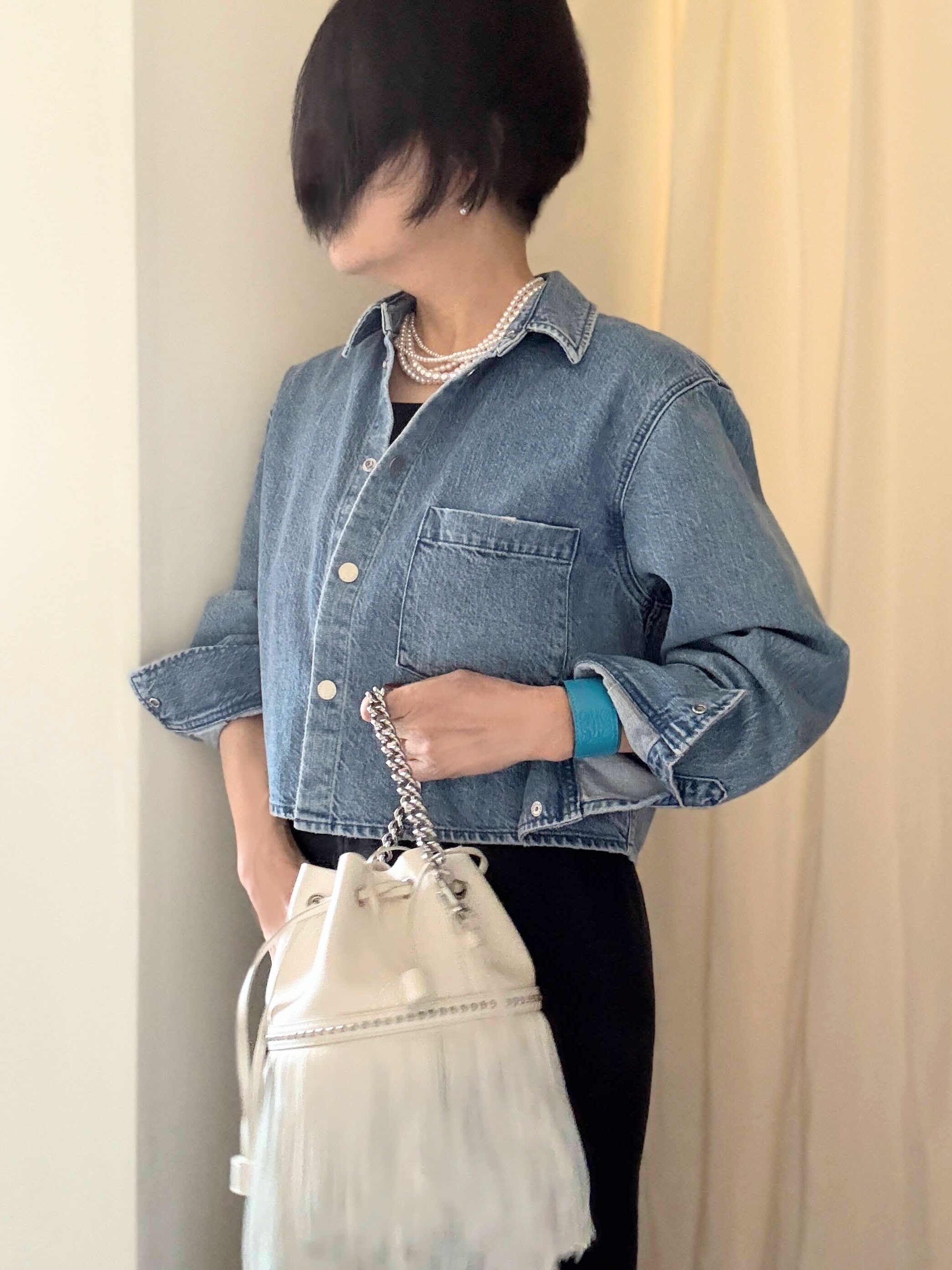 このピアスは大好き推しshop、ANOHさんのもの。大ぶりで華やかで。50代~の女性が身に着けると間違いなく映えるアクセサリーの宝庫!