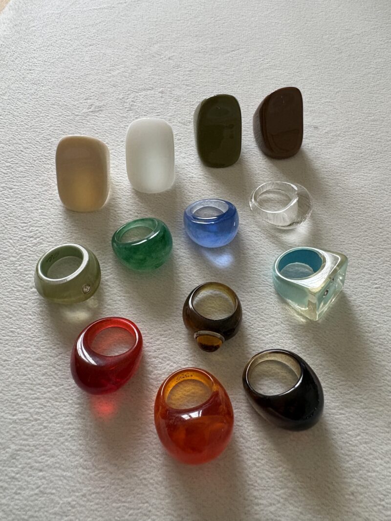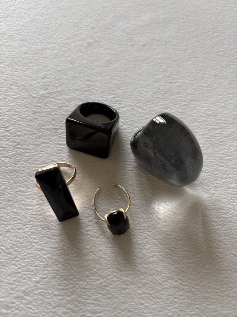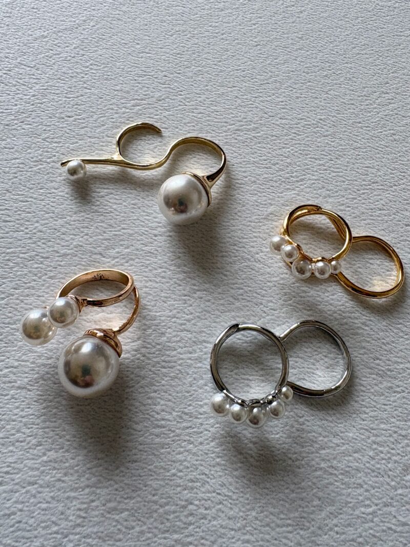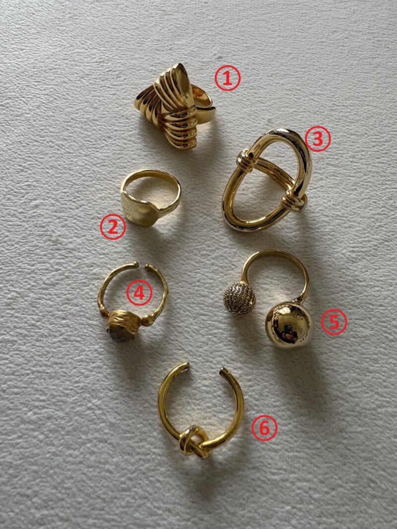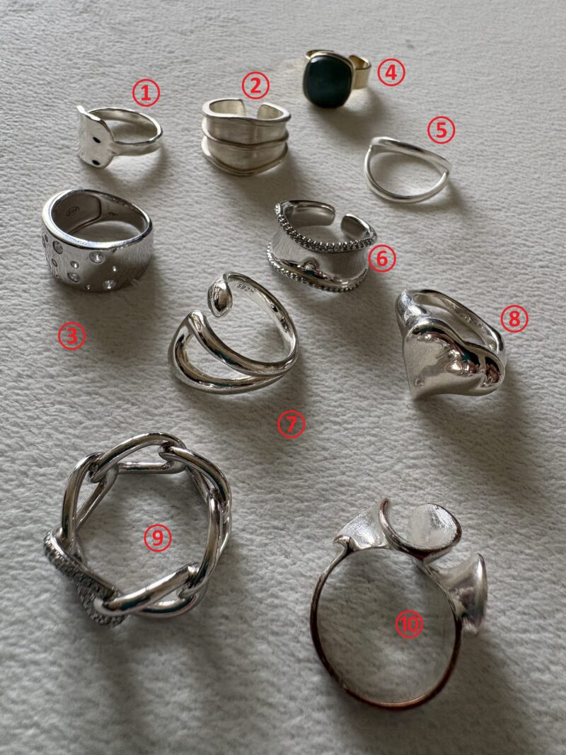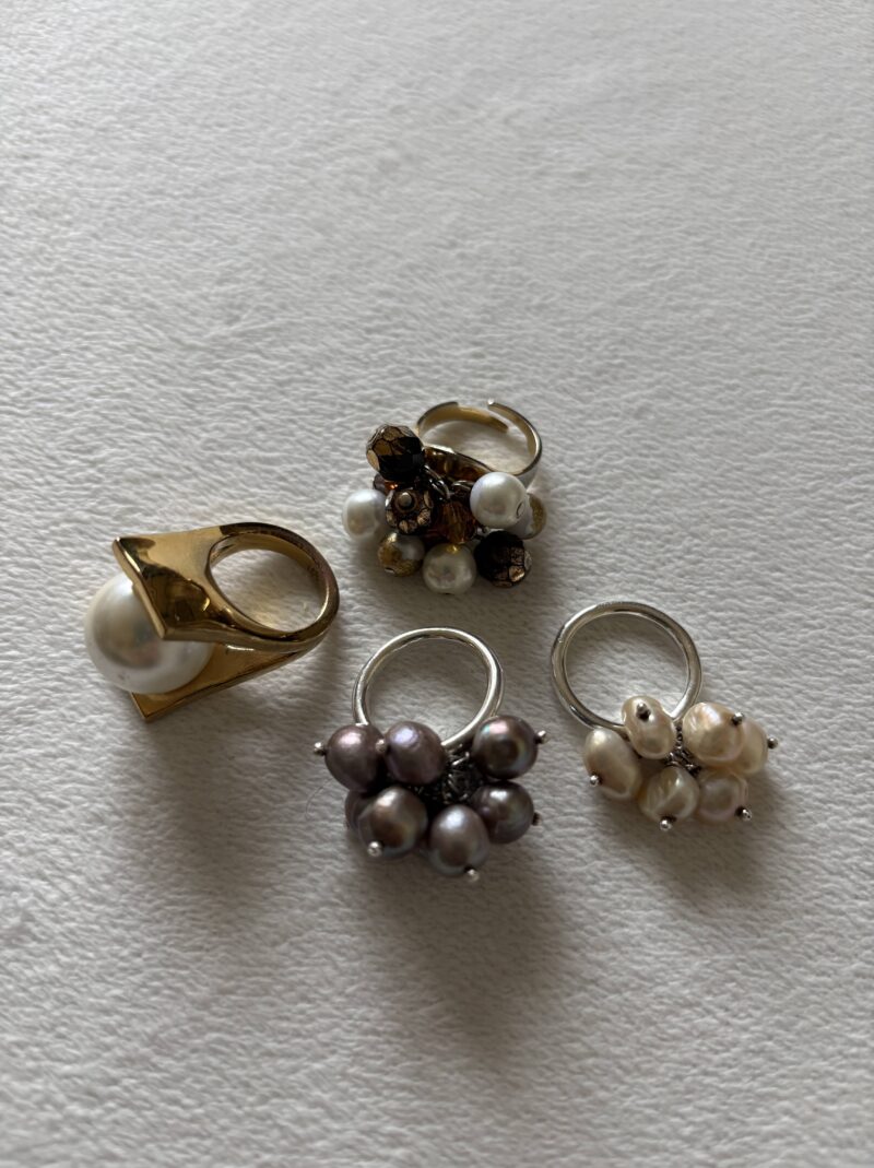 指輪は本物ジュエリー系も少し持ってるけど、日常的にガンガン使うのはシルバーやプチプラのもの。気軽に盛れて楽しい。