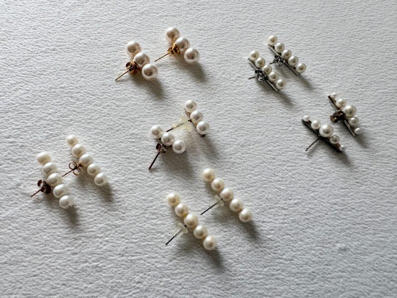 普通に本真珠のものも持ってるけど、ほとんど出番なし・・今はシンプルな一粒タイプを付けたい時は下のどちらかを使ってる。