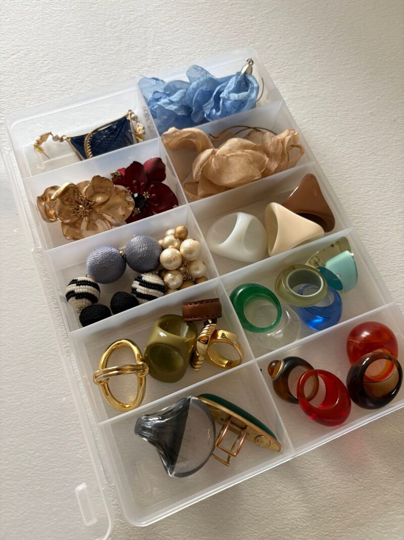 高額なジュエリーの指輪は傷がつかないようにまた別の箱に入れてるけど、プチプラ系はこれが最適!