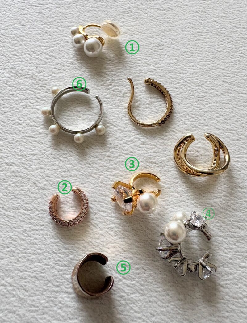 ピアスの穴開けてない方も気軽に耳の縁に挟むだけ。即横顔が華やかになるのでイヤーカフはお勧め!