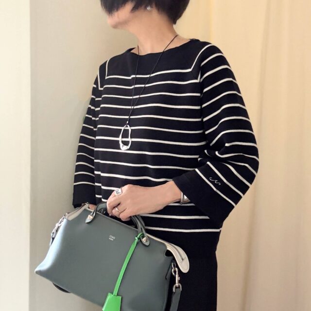 昨日に引き続き黒のポワン袖ブラウスで。仕事コーデ。動きやすくシンプルなコーデで。