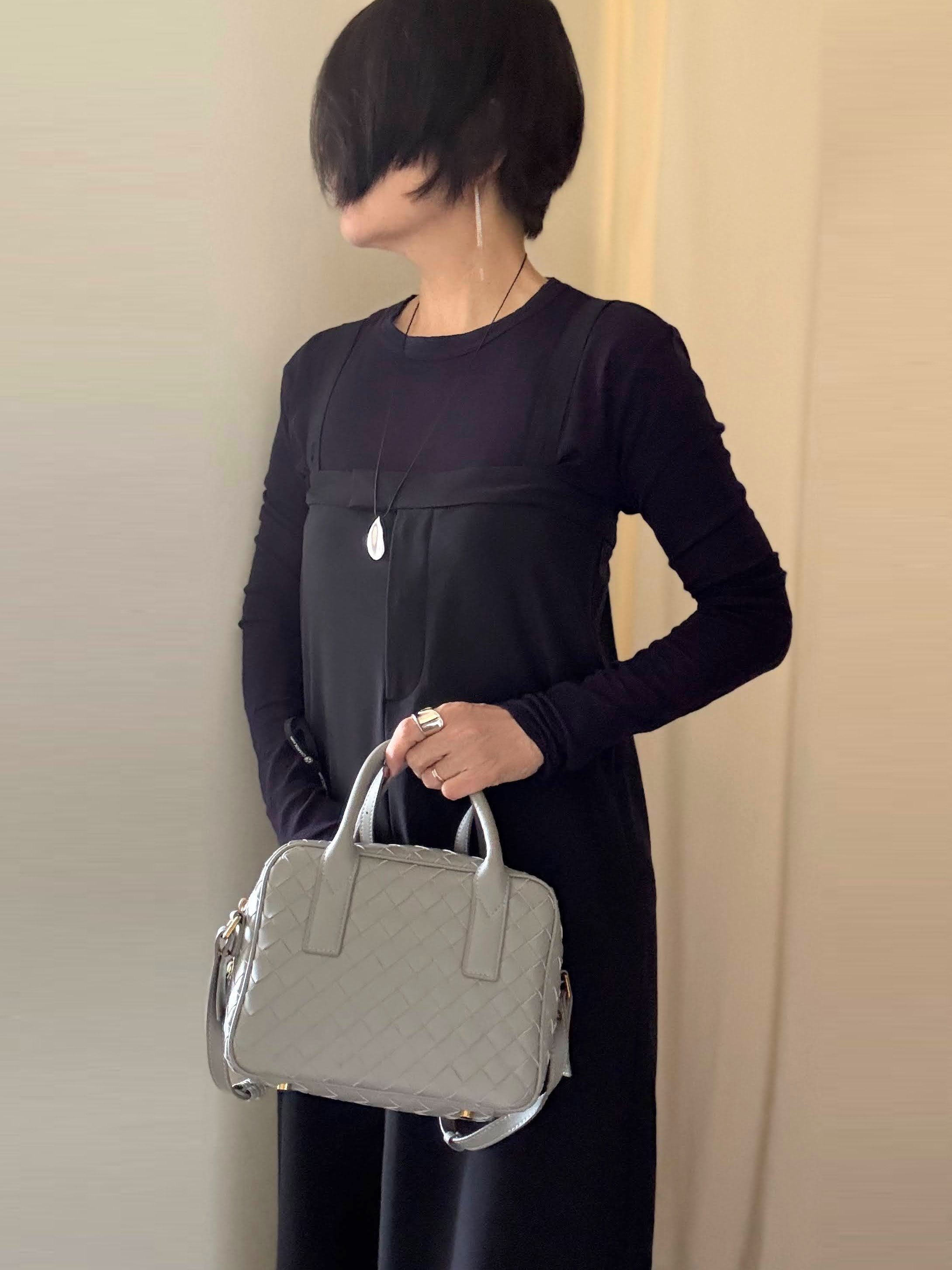 今ひらめいたんだけど、このジャンスカの上に普通に上からニットを着てレイヤードすれば、お腹の締め付けが一切ない楽々なコーデが完成する。シワにならない素材なので長時間座っていても楽だし。映画や観劇に時に私がよくやるコーデ。