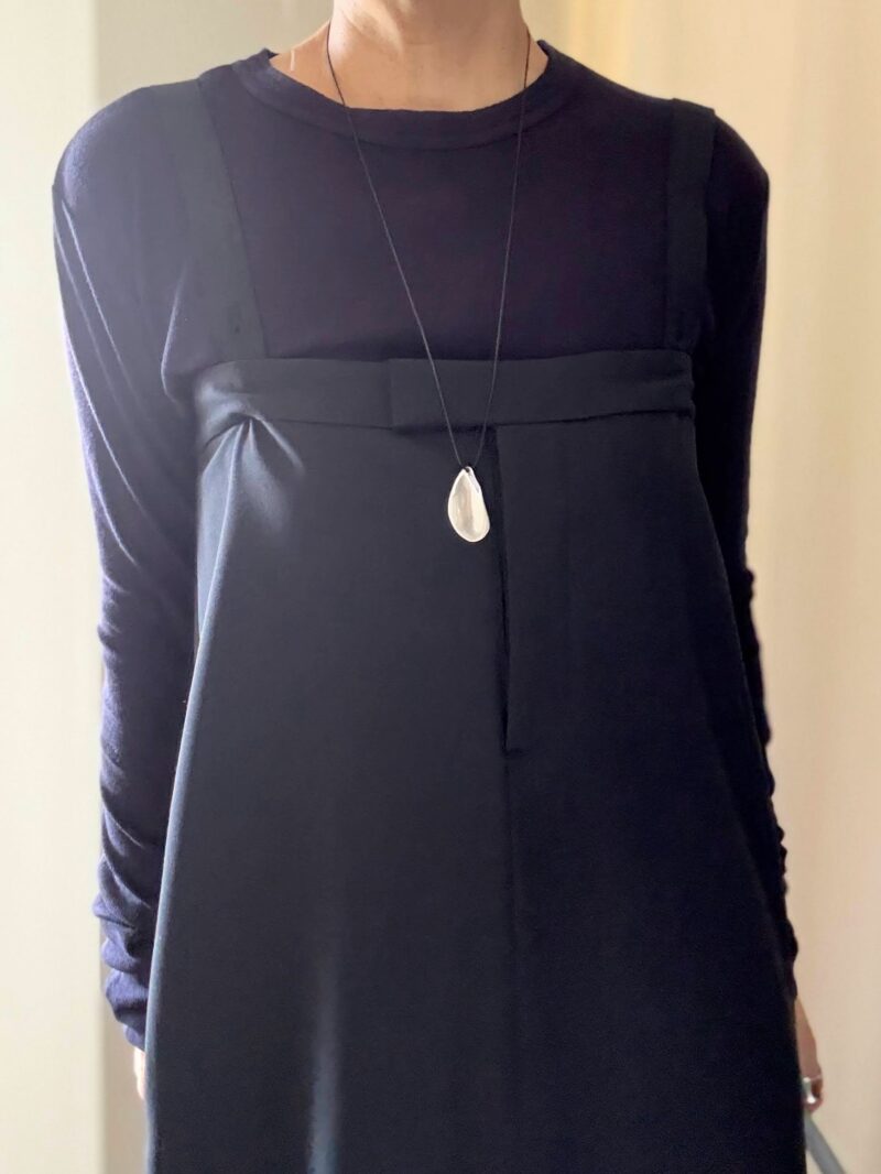 今日着ているジャンパースカート、ちょっとデザインが面白いお品。