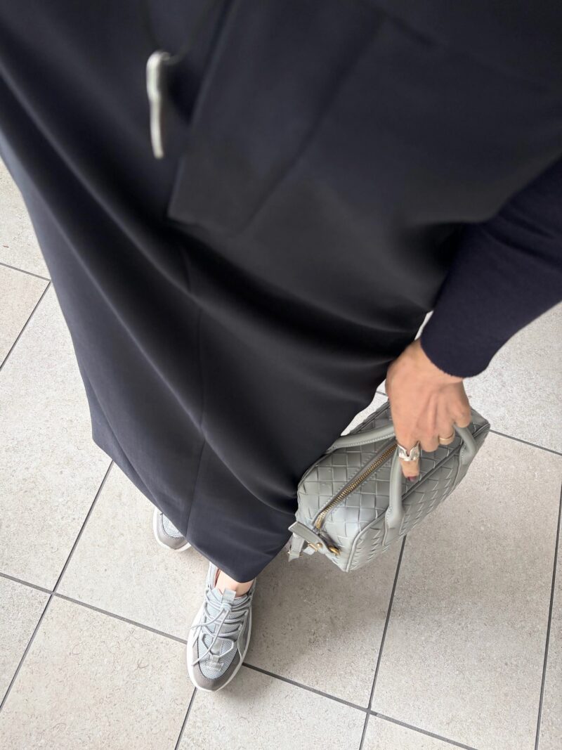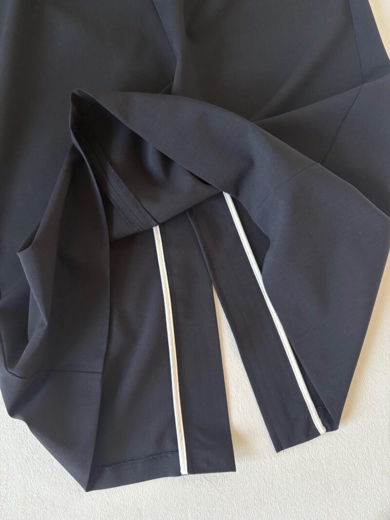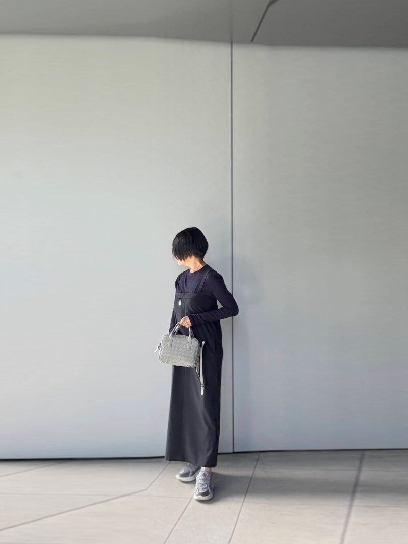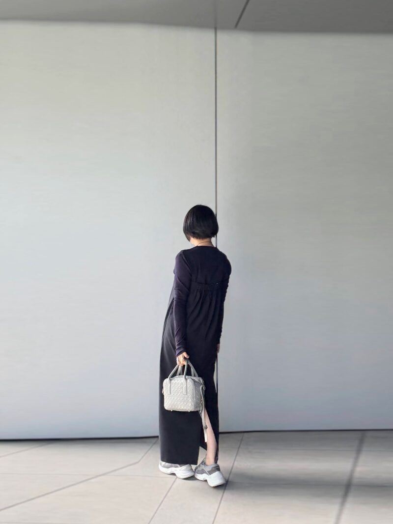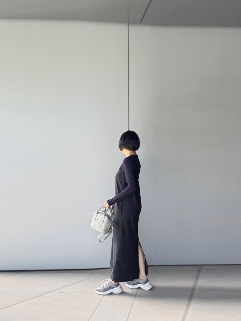 全体的にスリムぅ~なシルエットでストンとした落ち感なんだけど、スリットが深いので裾さばきが良くて歩きやすい。
