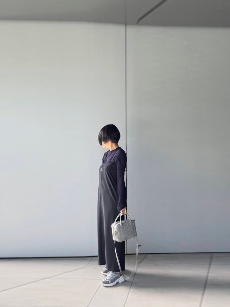 重心がグッと上に来るのでスタイルup効果大!!のジャンパースカートだ。