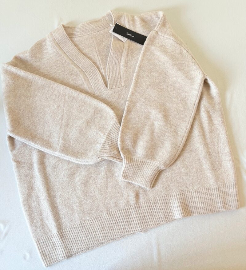 ・ニット:Vネック 長袖 ニット オーバーサイズ ゆったり ボリューム袖 ドロップショルダー and me(pr) 天竺編み