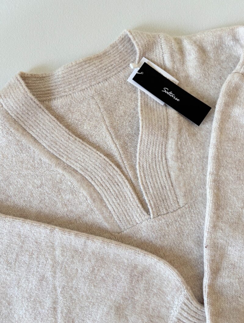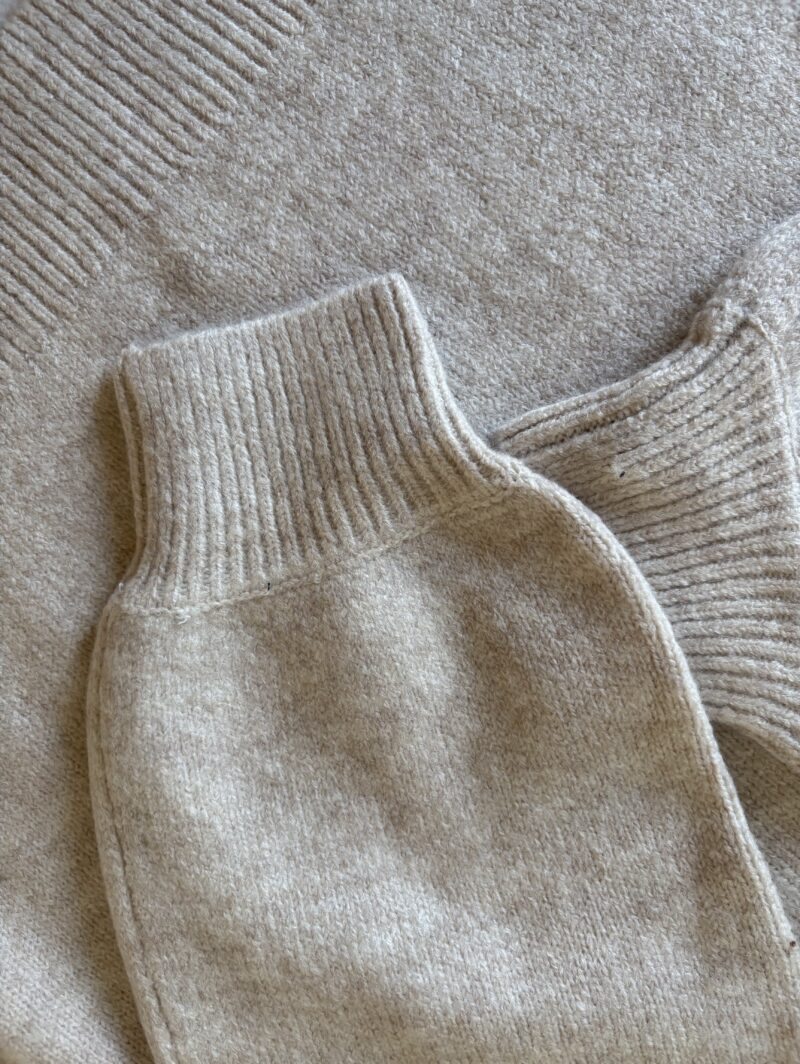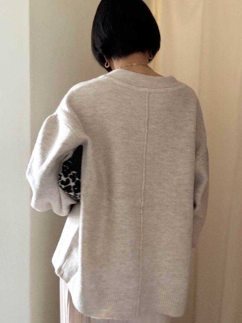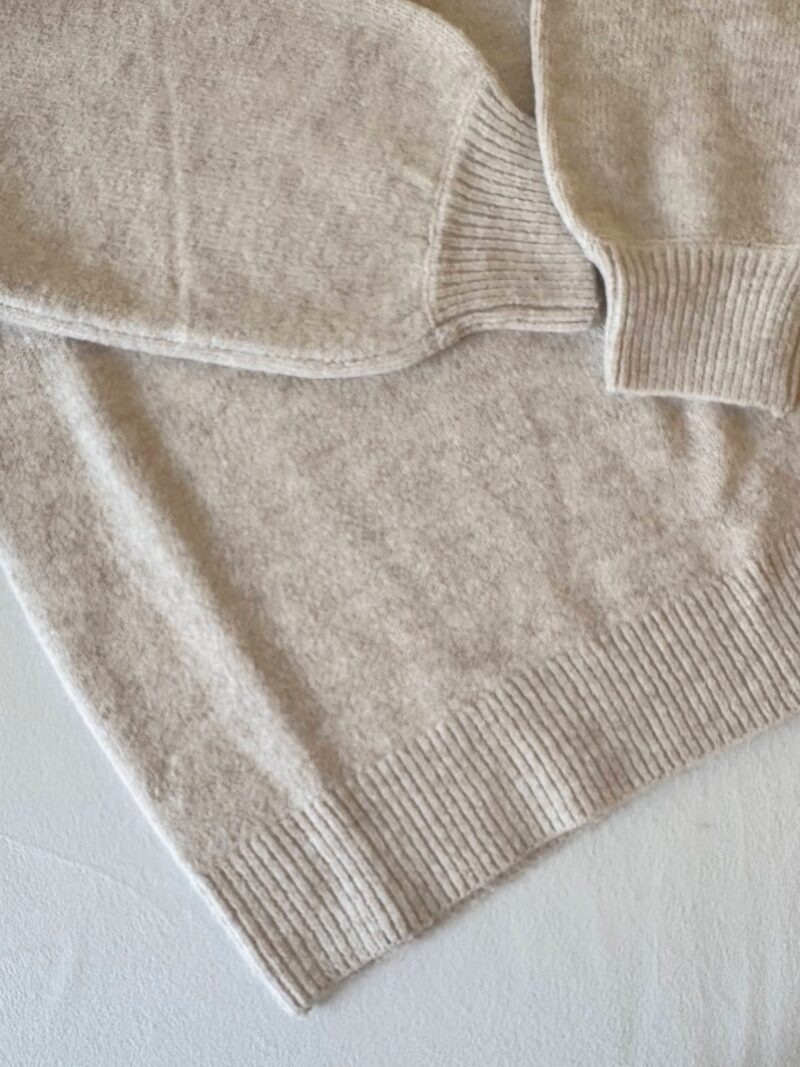 お尻隠れる丈。裾がストレートで変にすぼまっていないのがいい。こういう一枚でザクっと着れるニットはやっぱり重宝。何も考えないで着れる。