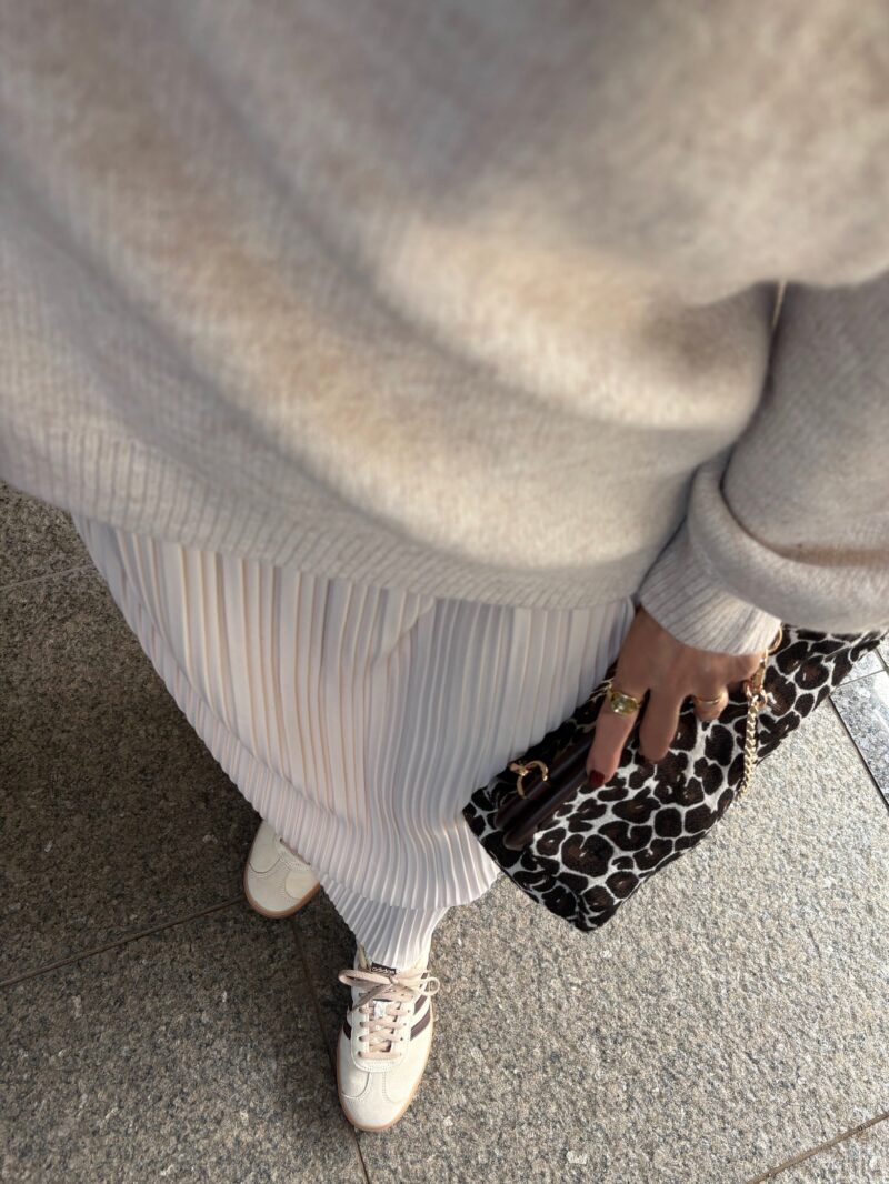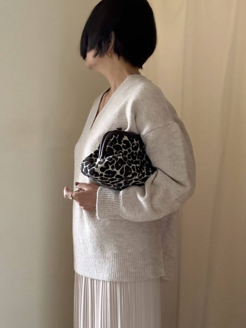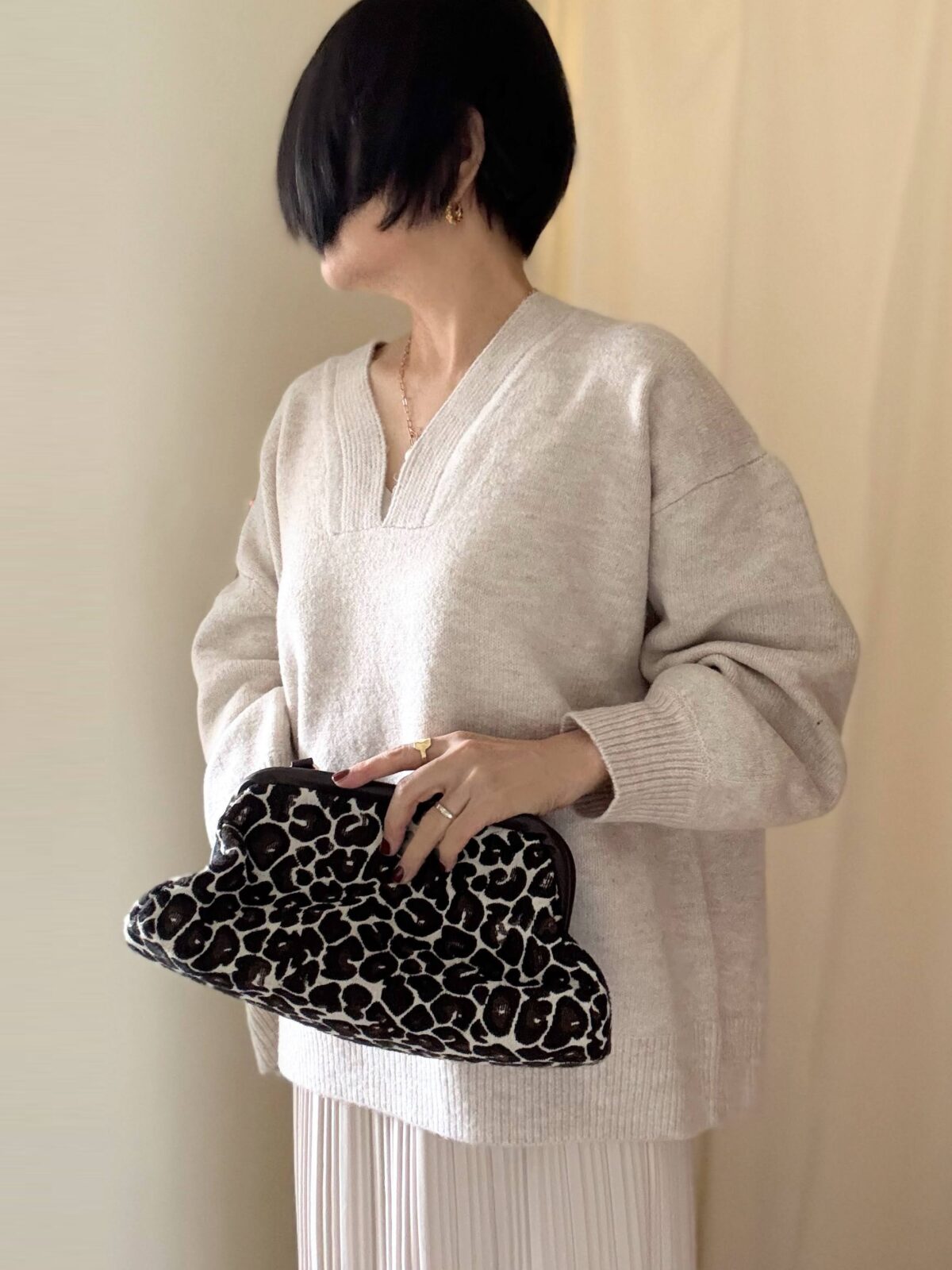 上下共アイボリーでぼやけてしまった・・のでバッグでアクセント。パンサー柄。