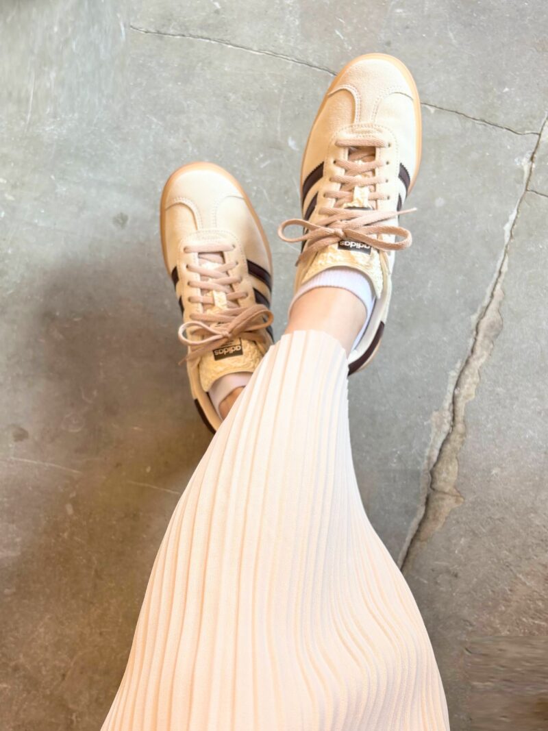 足元はスニーカーで。活躍しすぎのadidasのガゼル。