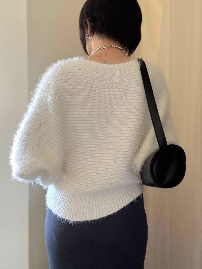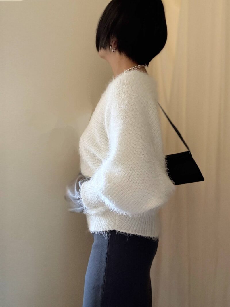 ・白いモヘアニット:【MIA/ミア】シャギードルマンニットPO/