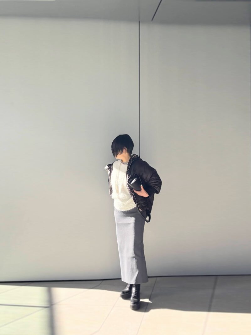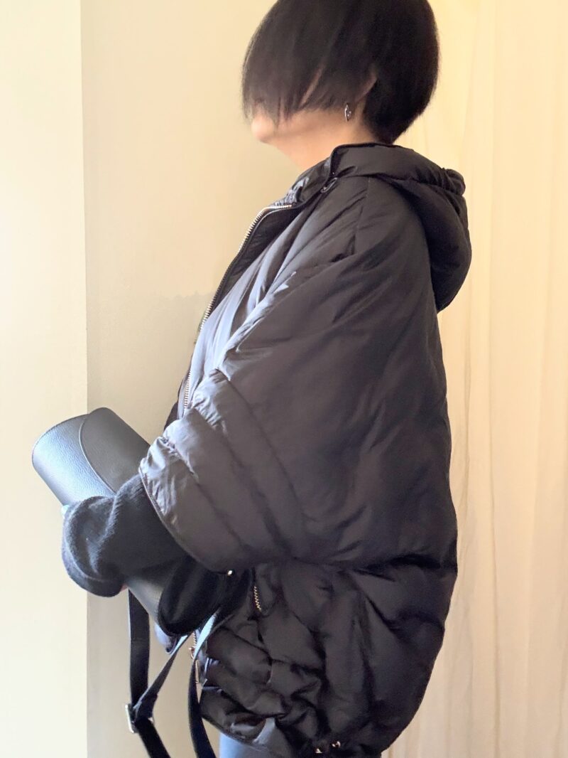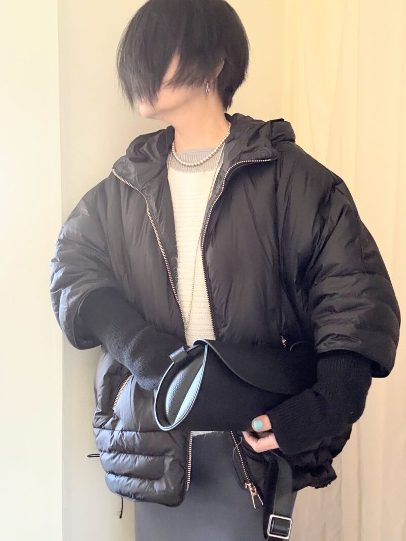 肘からリブニットになっているダウンを羽織り。柔らかくて軽くて暖かい!