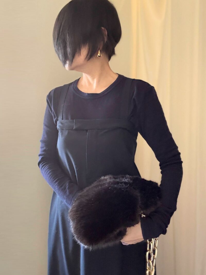 これ、すごく暖かい。コート要らず。ファーのbagで。