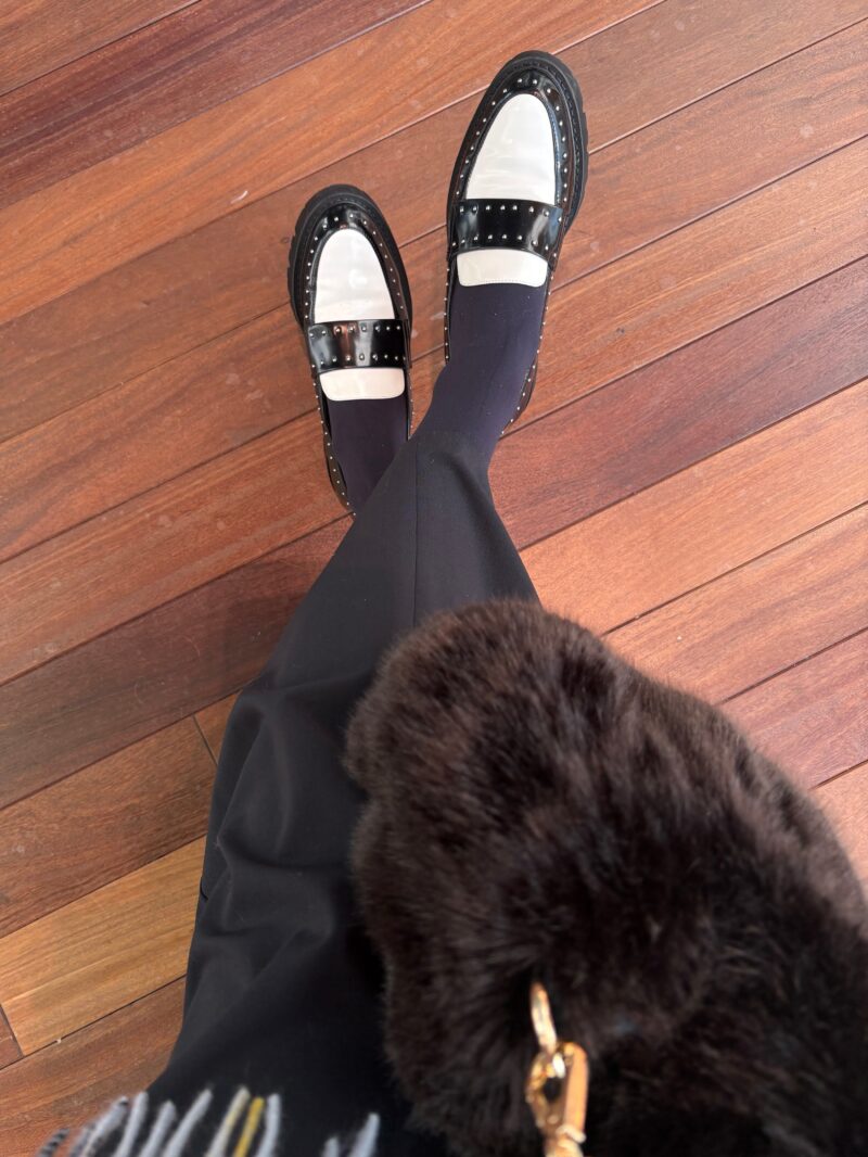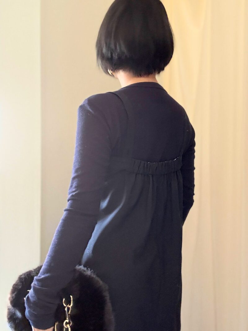 タイツはスカートに合わせてネイビー。もちTabioの80デニール。