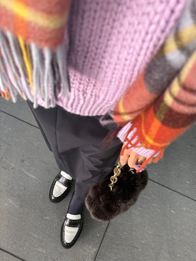 念のためカシミアストールを持った。これで充分な暖かさ。このチェックのカシミアストール、ヒット品。手持ちの服何にでも合う色。グレーとかネイビーとかブルー系の服が多い人は重宝するはず。