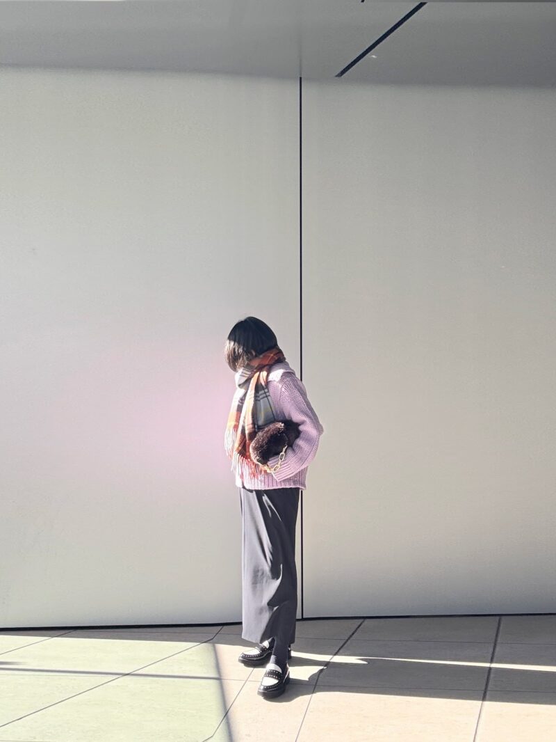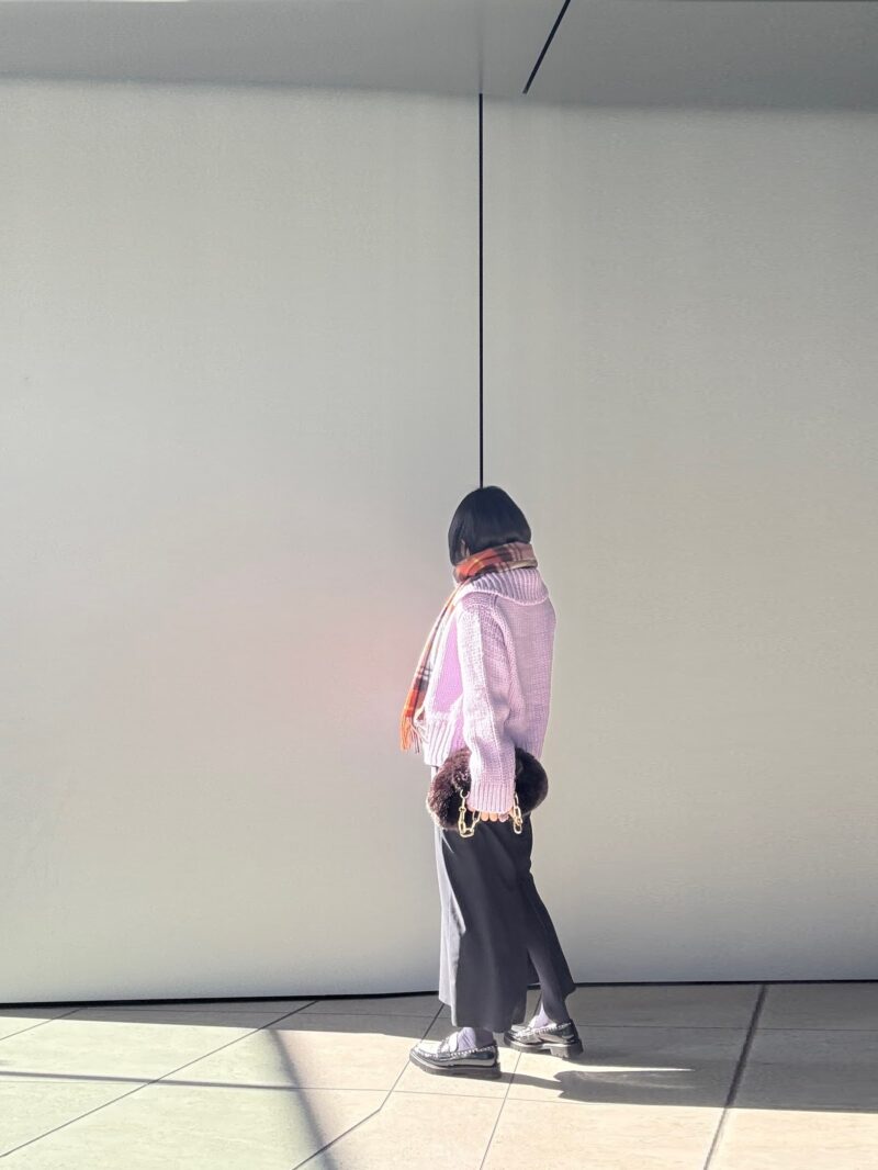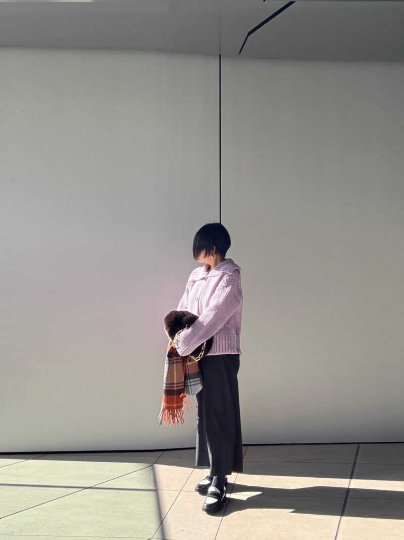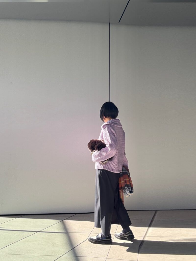 明るい色のニットって本当に心癒される。もふもふフカフカ。