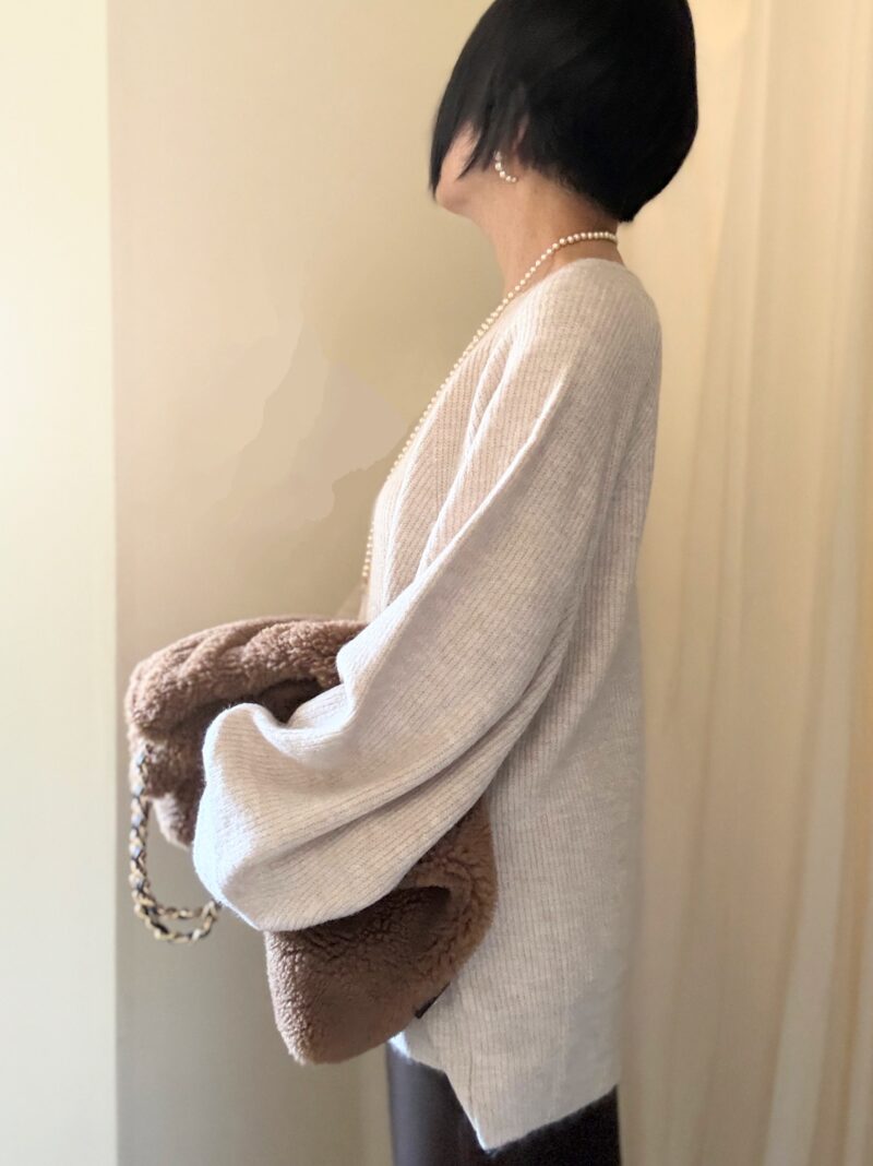 肌触り良くて軽い!BIGニットは重いのは肩が凝るのでNG。これはずっと着てても軽くて楽。