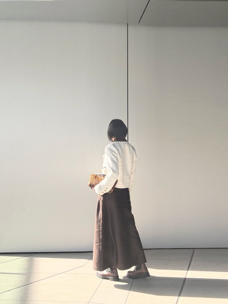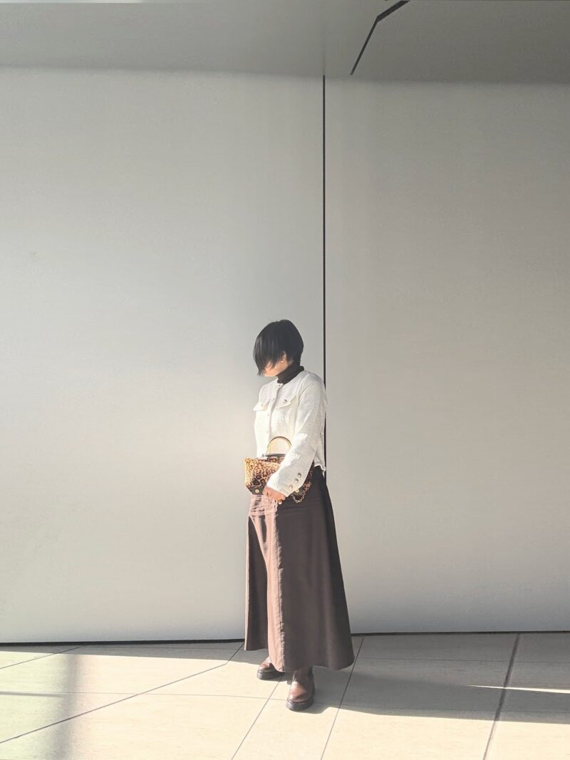 コンサバな気分だった朝。ノーカラーの白のショートジャケットでかなりかっちり寄りなイメージに。