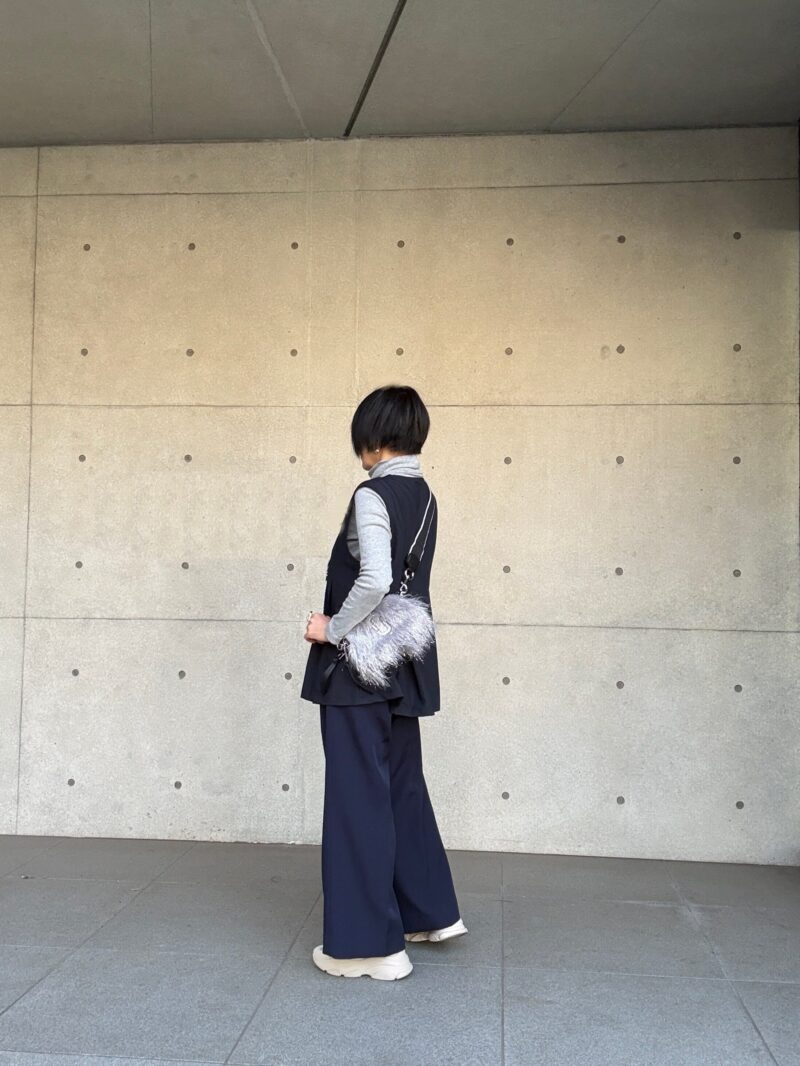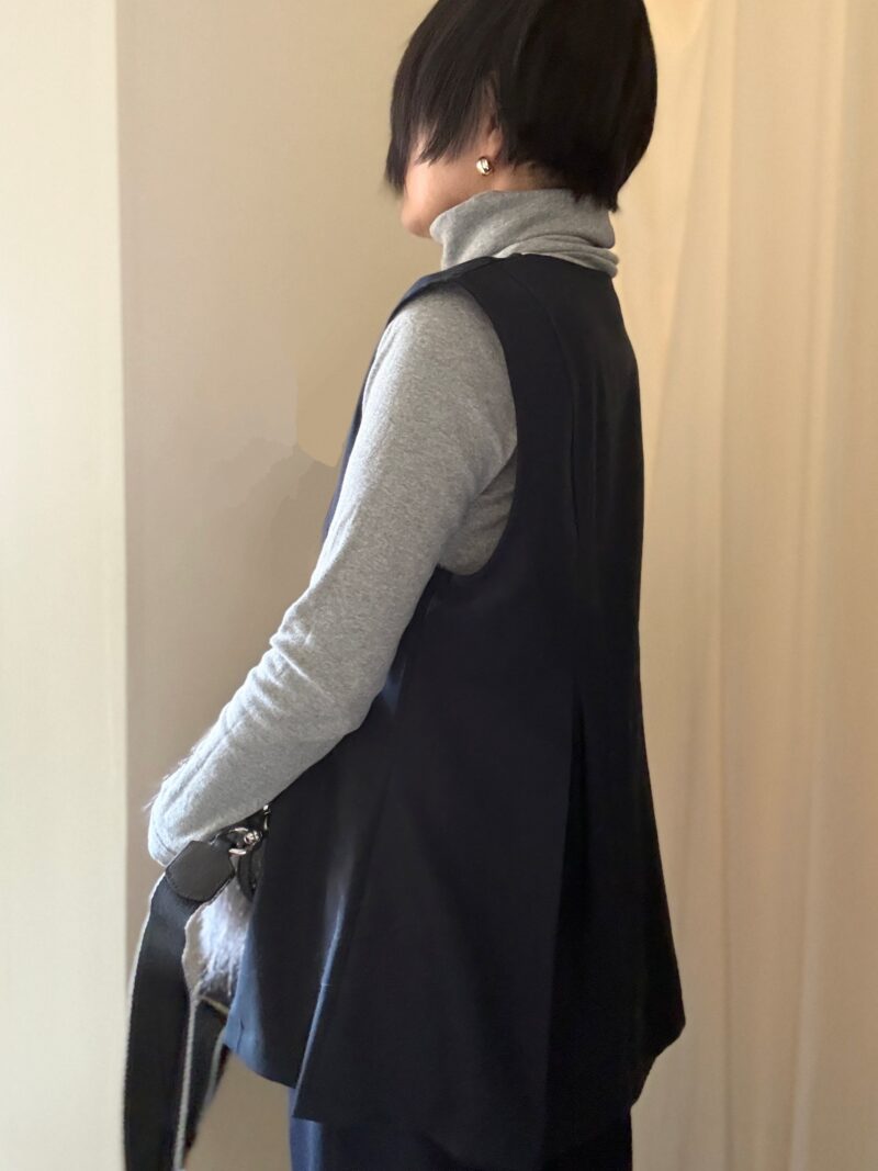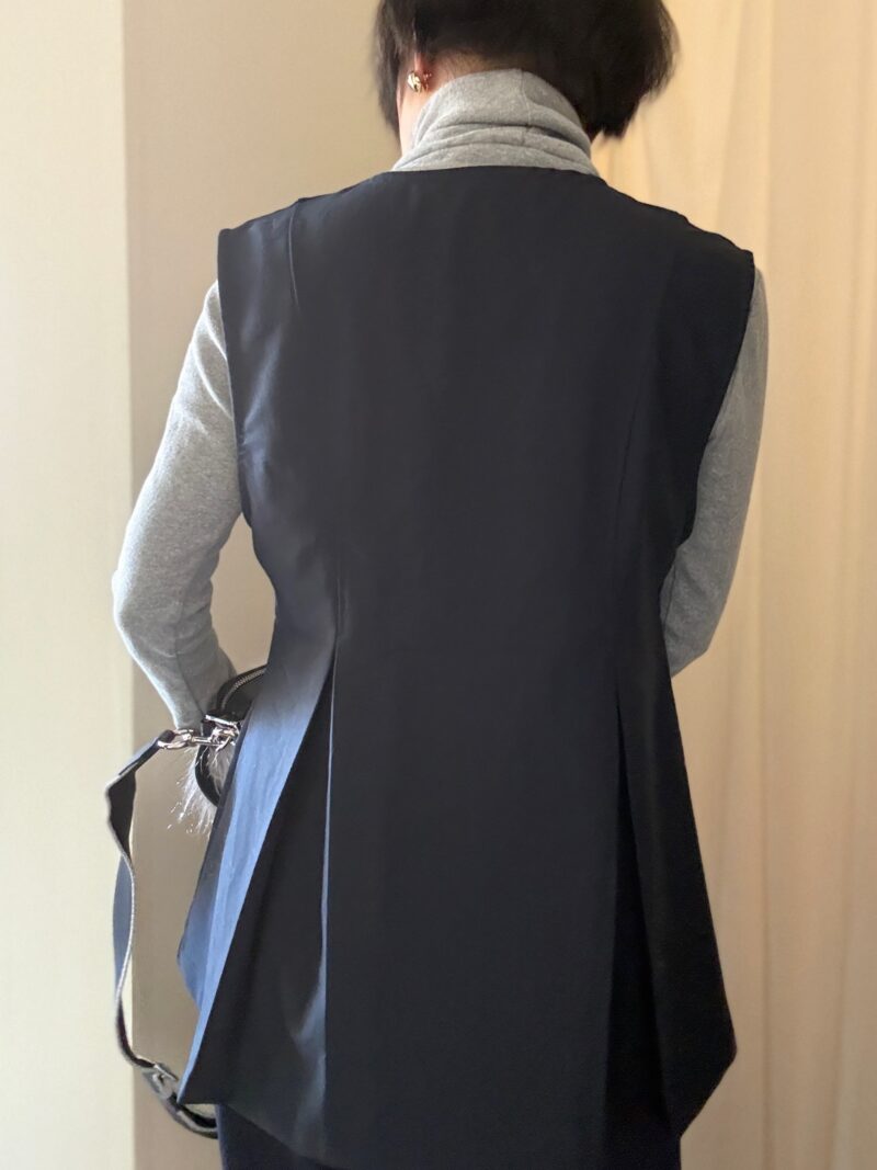 今日着ているベスト(ジレ?)はウエストから広がっているデザイン。着やすい。背面のシルエットが整ってていい感じ。