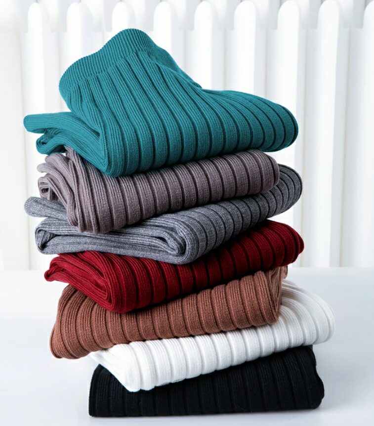 厚地のリブなのでライン拾いにくく重みでストンと下に落ちるシルエット。