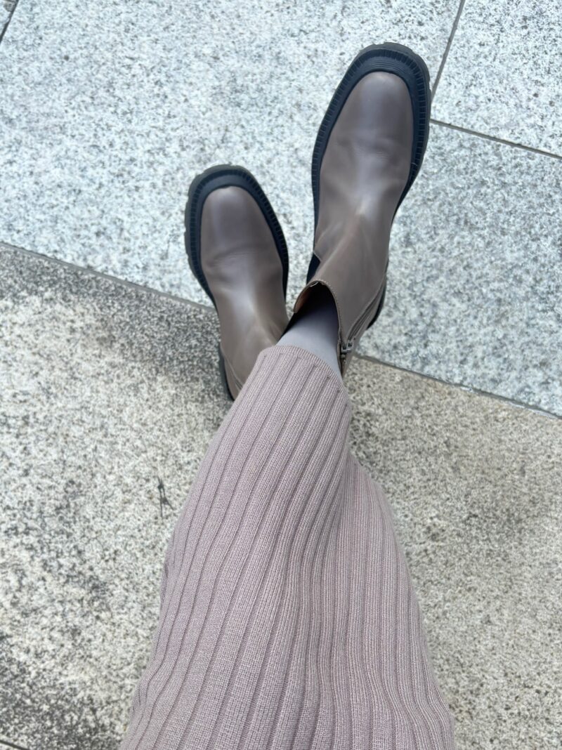 ふふ。ちゃんとタイツも色合わせしましたとも!(*’▽’) ここで黒いタイツはいたら台無しなので。ニットタイトスカートの良いところは