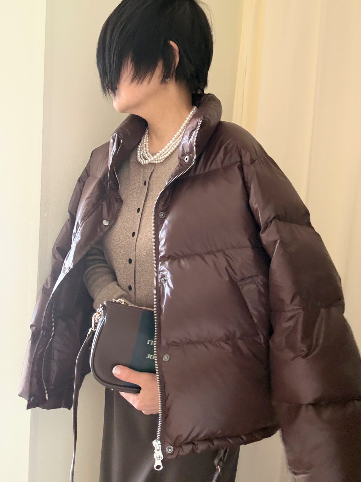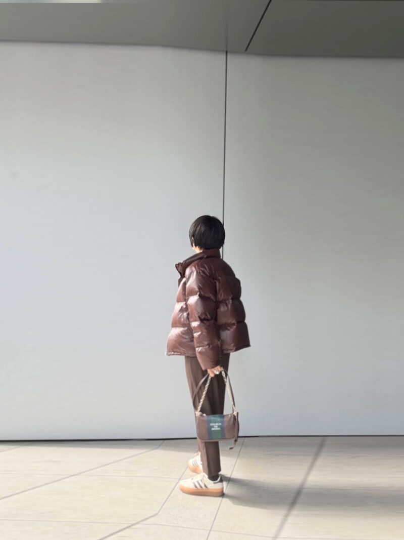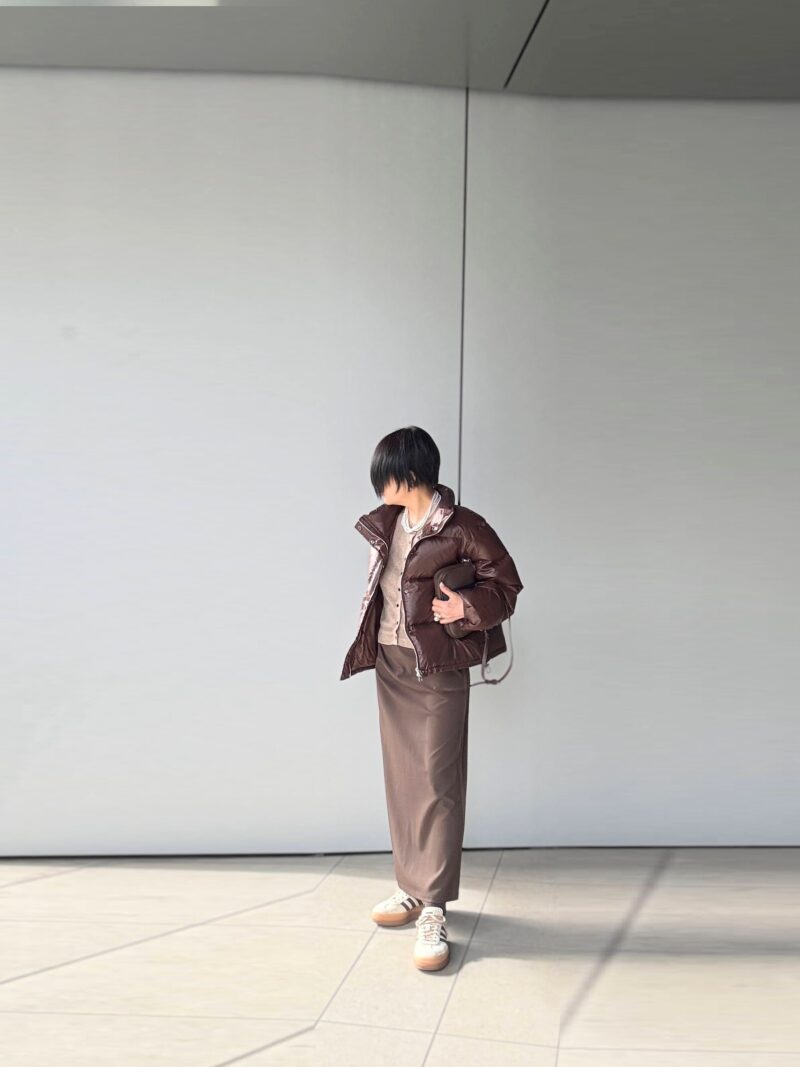 全体。このLongedressのダウン、ショート&ボリューミーなのでボトムスはうんとスリム系のものが合うと再認識。