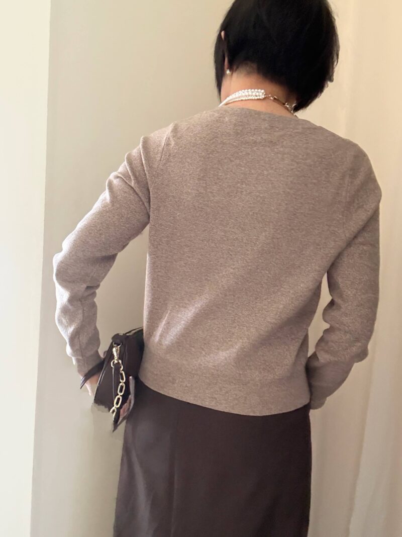 ピタピタでもないけど、オーバーサイズでもない。ちょうどよいゆとり感。一枚でも着れるし、羽織りものとしても活用できそう。ジャケットのインナーとしても優秀。