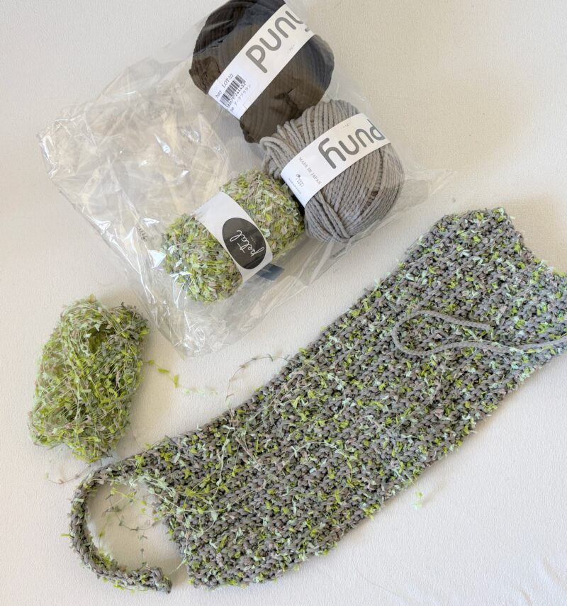 余談。先日オカダヤで買ってきた手編みのbagキット、どんどん編み進めている。