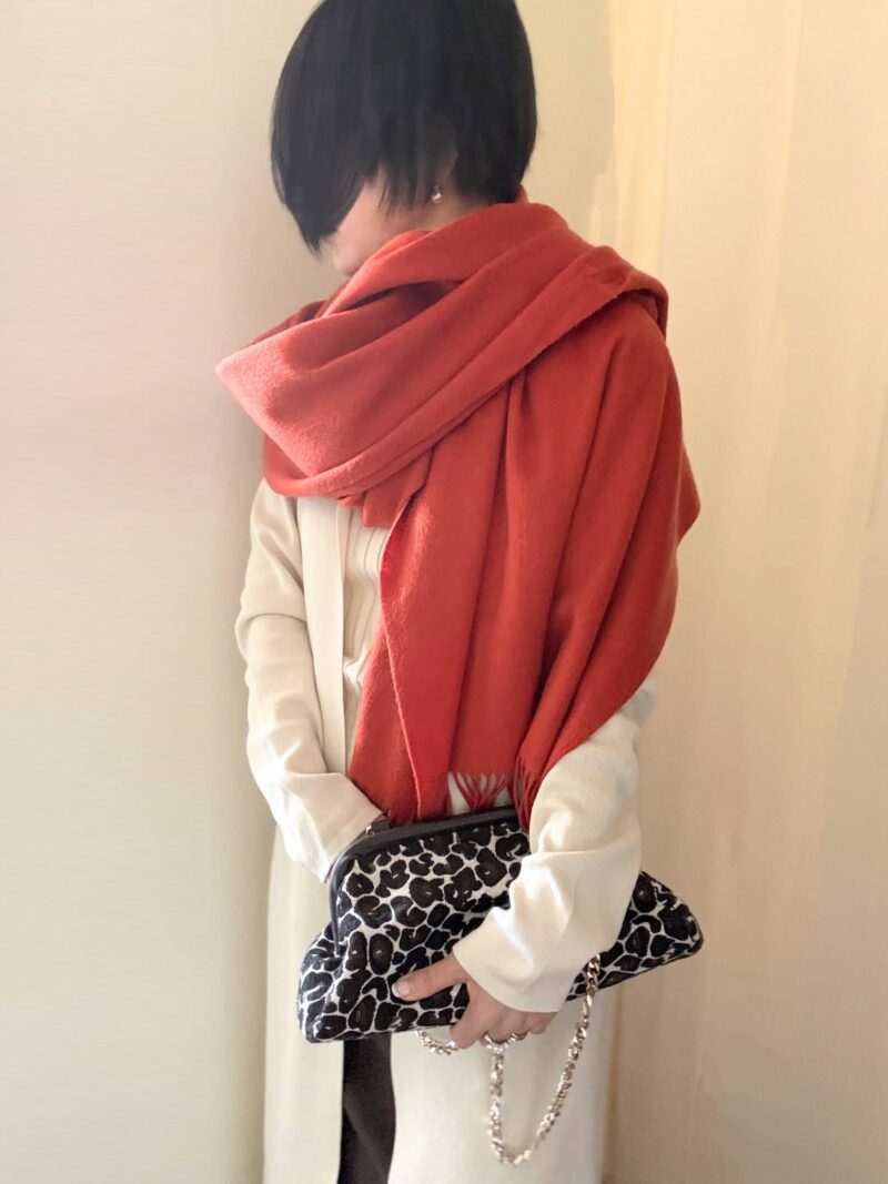 これだけじゃ寒いので、カシミアストールの大判をプラス。車移動で外歩かない予定の日だったのでコート無しでOK。