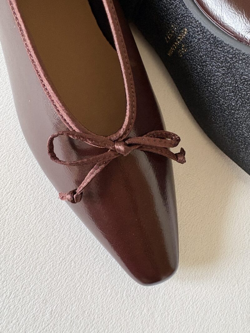 バレエシューズっぽいんだけど先がとがってスマートなデザイン。しっかり甲を覆うので脱げにくい。
