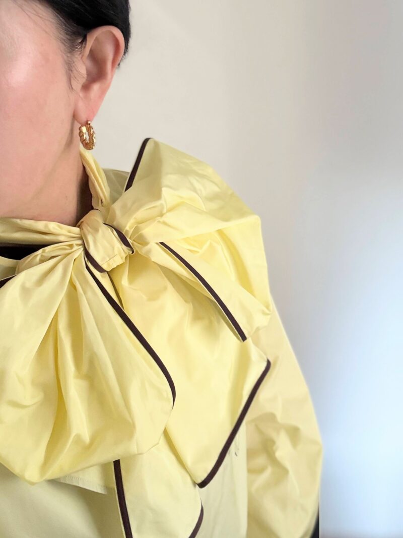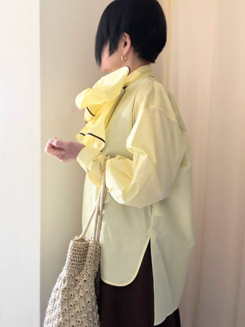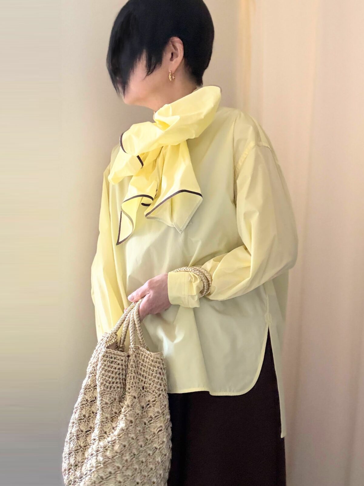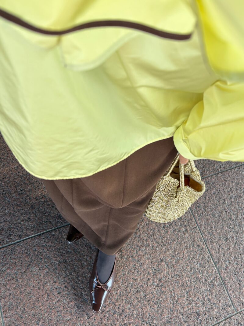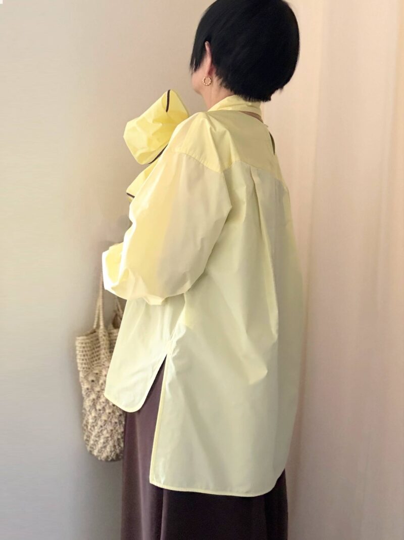 先日、軽井沢で買った鮮やかな黄色のタフタっぽいパリパリなブラウス。