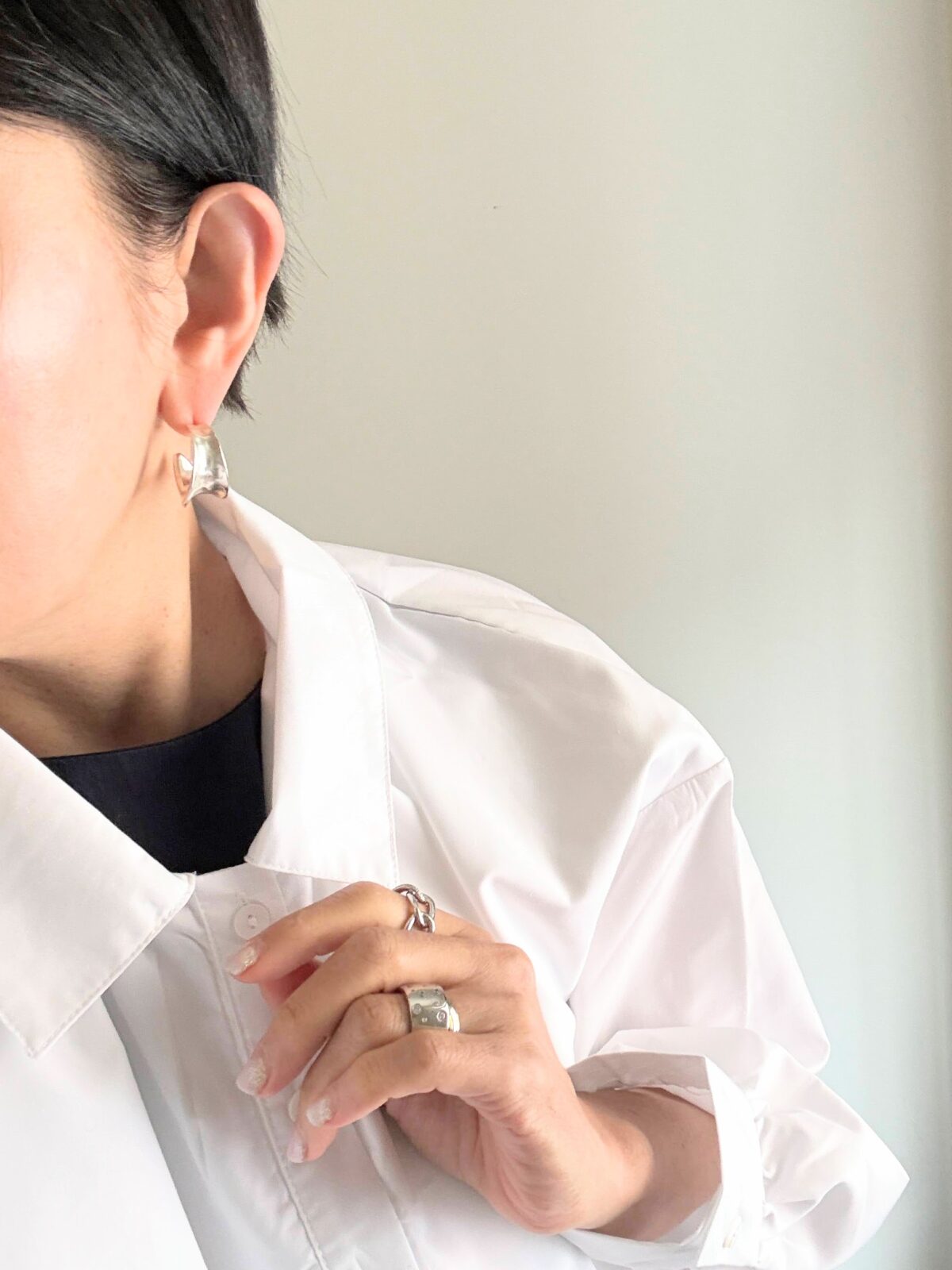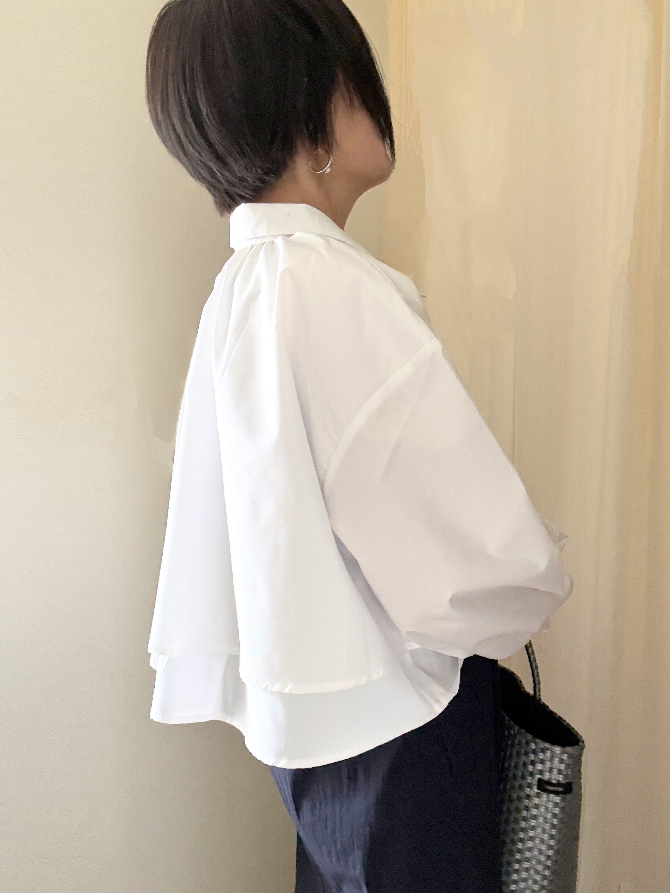 前から見ても後ろから見てもシルエットが綺麗なシャツ。