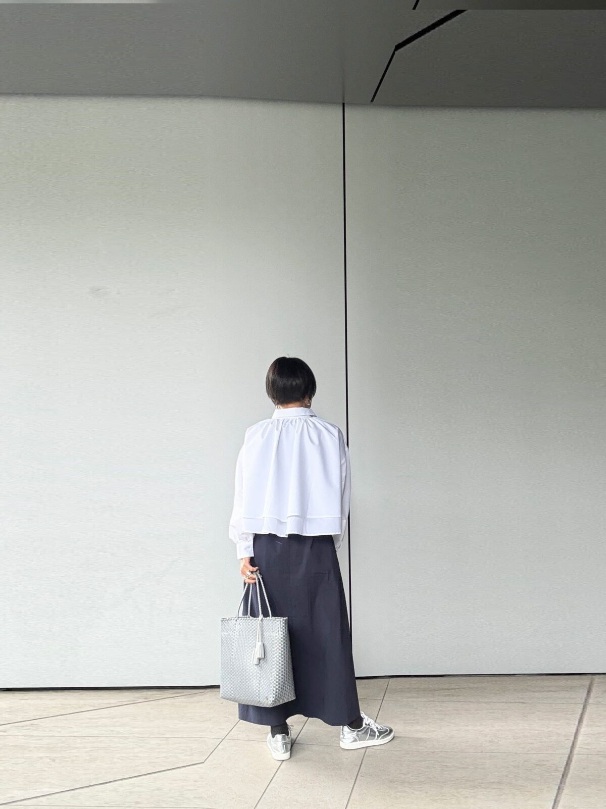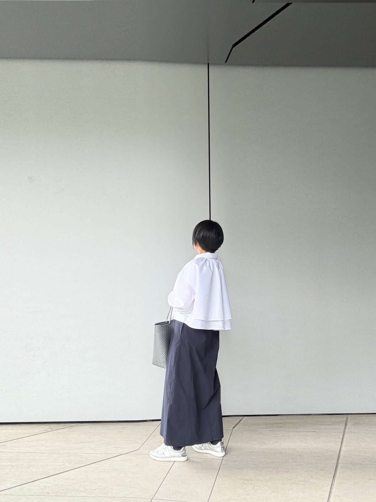 ハイウエストのパンツかスカートを下に合わせるのがコツ。