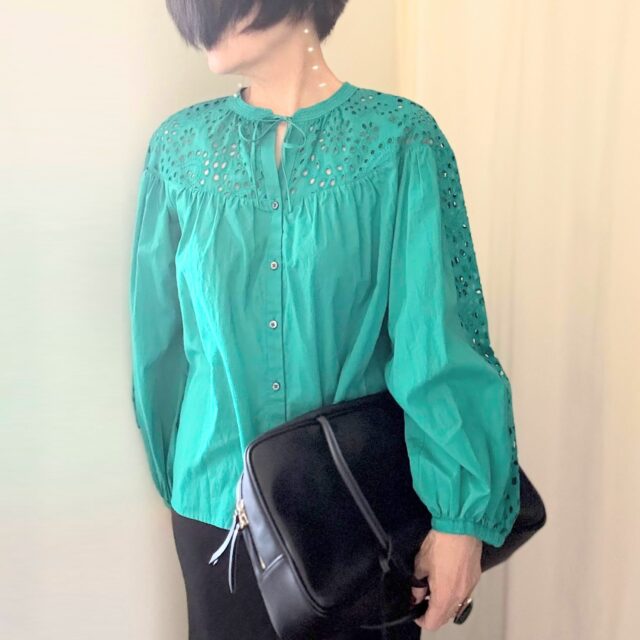 50代のコート 鮮やか緑のカットワークブラウスのコーデ 鮮やかエメラルドグリーン色のカットワークのブラウス。 UNITED ARROWSのサイトでSALEになっているものを夏物として追加で購入したもの。 いつもチェックしているUAのオンライン公式サイト ↓ お盆過ぎ、「こりゃ9月も当分暑くてシャ... 2025.10.01 50代のコートUNITEDARROWSユナイテッドアローズ楽天ファッション レディース