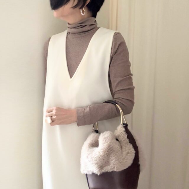 先日着ていたベージュ色のコットンのタートルネックのカットソー。↓ このタートルの ✅肌触りの良さ・柔らかさ ✅フィット感 ✅コーデの下地になる便利さ をとても気に入り、色違いを入手! 今日はオートミール色。 生地の厚みもある程度あるので、変...