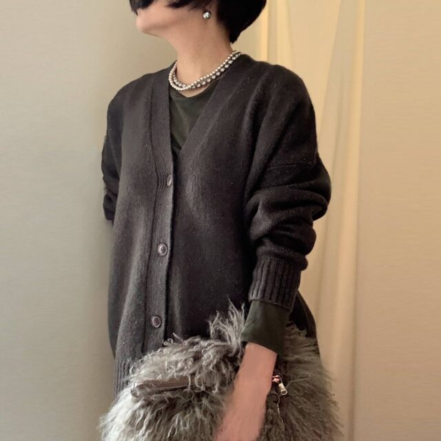 楽天ファッション レディース ゆるめオーバーサイズの ニットVカーディガンのコーデ カーキよりのグレーのニットカーディガン。この微妙な深い色合いを生かして「カーキ色リンクコーデ」。 このカーディガン、お尻も隠れるし袖も長め。 ゆったりしたシルエットでこなれ感。 アクセサリー。 カーキとグレーパール相性良し! ネックレスは一... 2025.10.18 楽天ファッション レディース