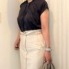 こういうコーデってなんとなく、モッサリとぼやけてしまうので、アクセサリーは重要。新入りのアイボリー色の革のバングル。