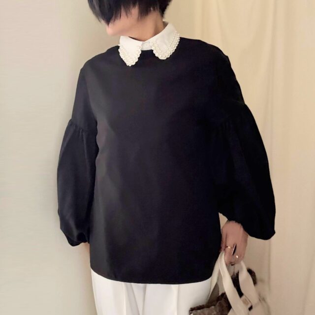 and MeさんのTOPSは本当にいい!いつもニクイくらい細部が考えられていて、体型カバー力もあり、形がこなれている。