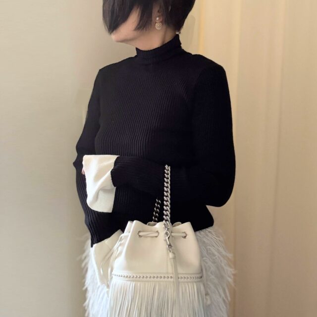 ヒラッとしたスクエアな形が上半身を綺麗に見せる神ニット。