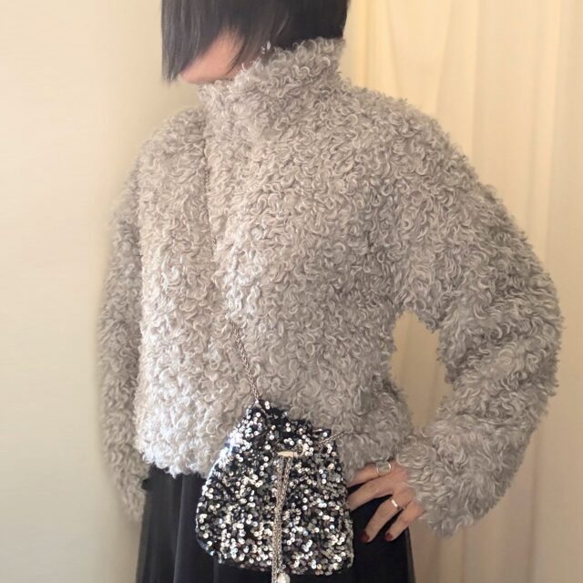 車移動だったので、手ぶらで美術館の中を動けるようにスマホポシェットだけで。(その他 サブバッグと荷物は車の中に)ZARAのキラキラポシェット。大活躍してる。