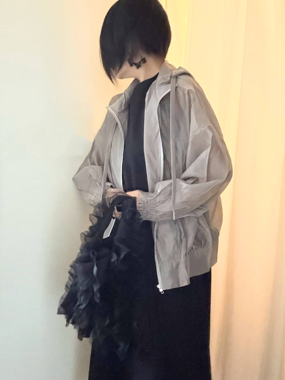 シアーなパーカーに合わせてバッグ選び重要。同じくシアー感が出るチュールのbagで。カワユス。