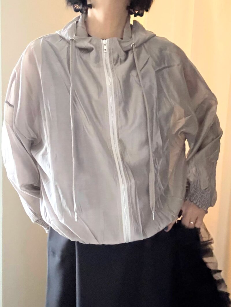 綿の分厚いパーカーってどうしても50代が着ると重くてスポーティさが違和感あったけど、シアー素材はいい!
