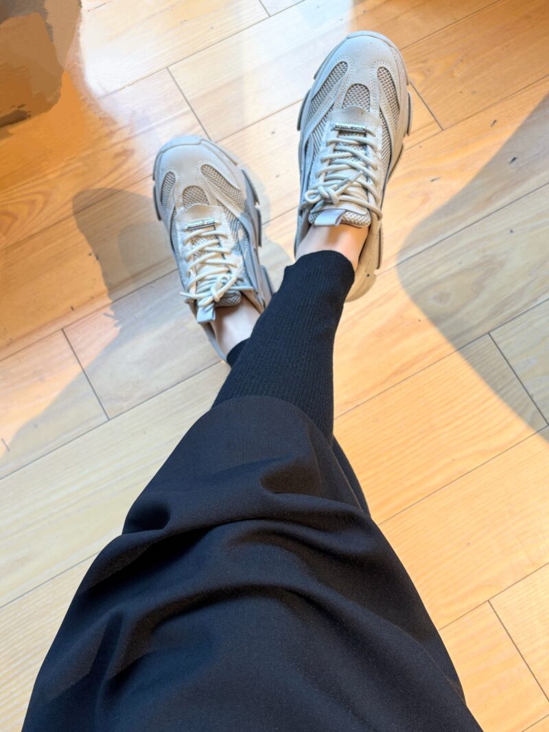 足元。カジュアルにまとめたかったのでゴツメのスニーカーで。STEVE MADDENのスニーカーはゴツメだけど今っぽくまとまる。