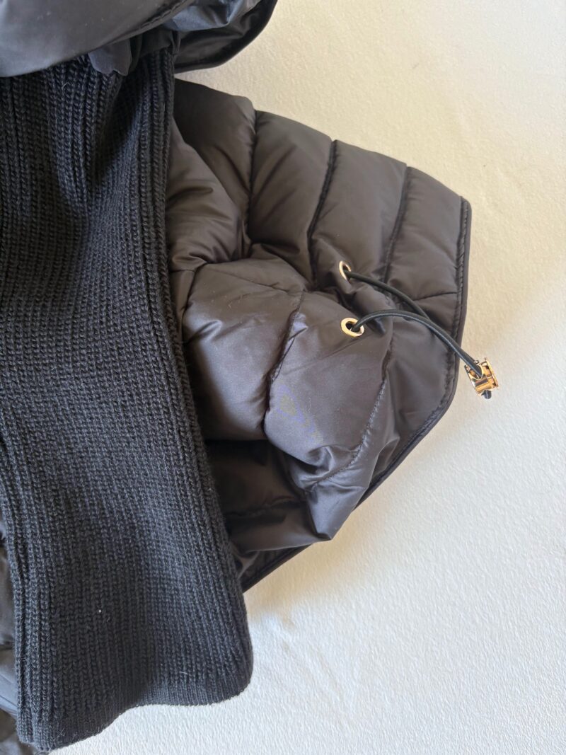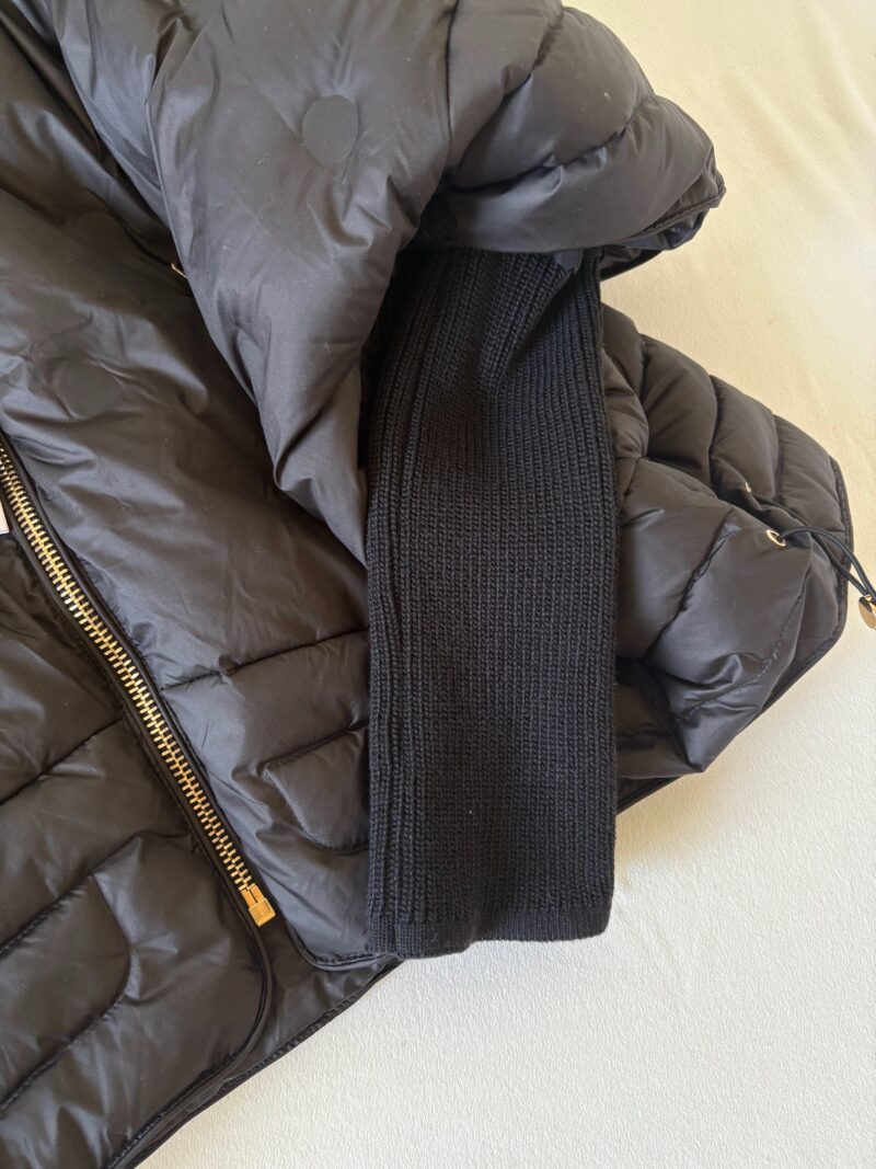 このゴールドブラウン色も黒いリブ袖と色が対比してオシャレ!間違いなくゴージャス。大人の女性のダウンという感じだ。