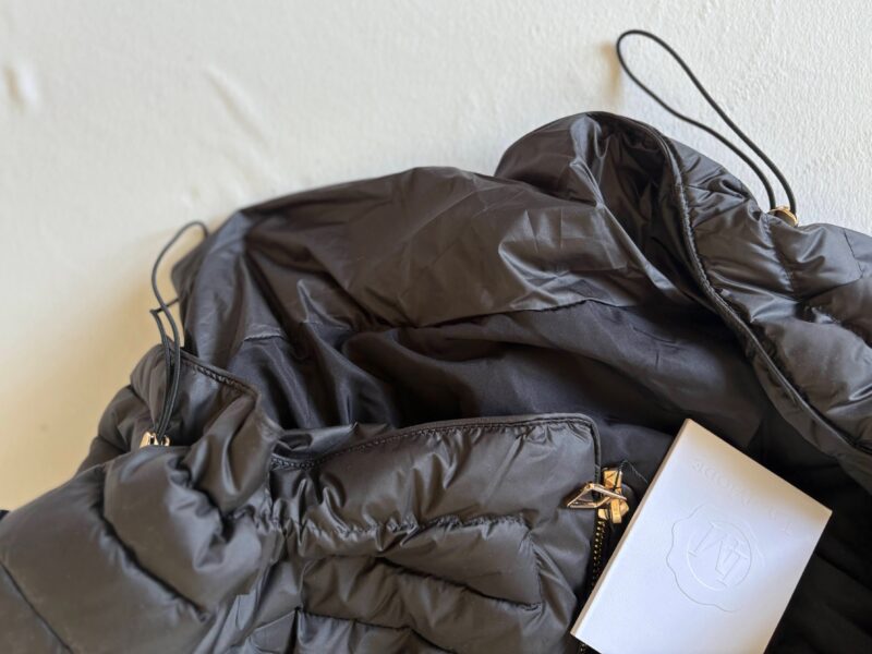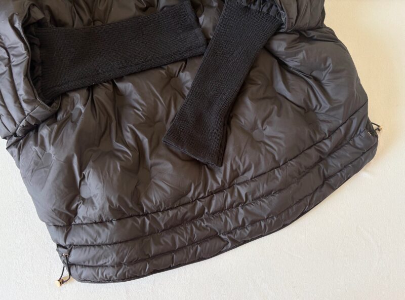 ダウンコートの裾にもコードが通してあり、ギュッと絞ったり調節できる。便利。